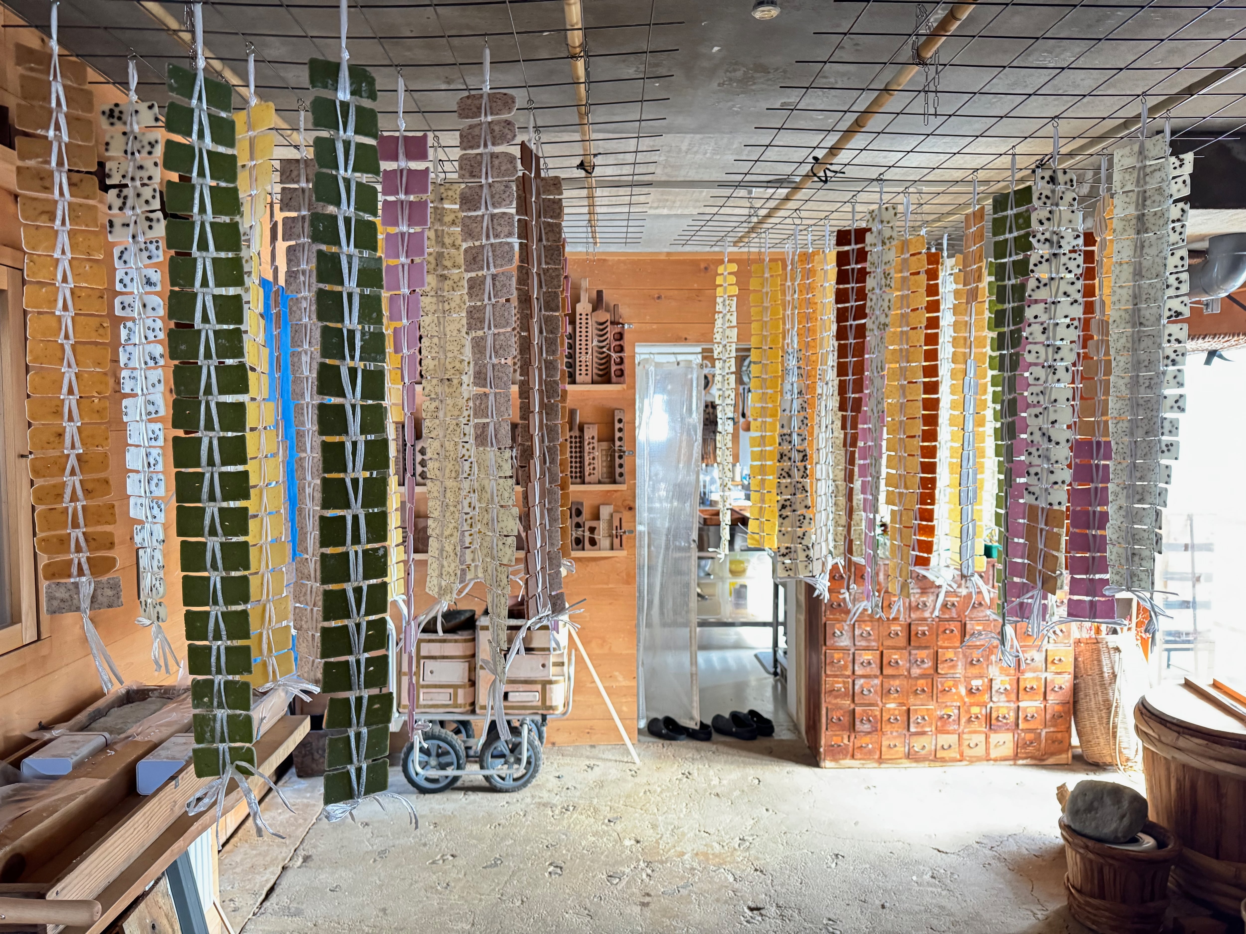 能登で一番雪深い輪島市三井町。大寒の頃冷たい山清水で蒸し餅を搗く。短冊に切り、編んで吊るすのが風物詩。じっくり割れずに乾くのは、日本海側の気候ならではの保存食。